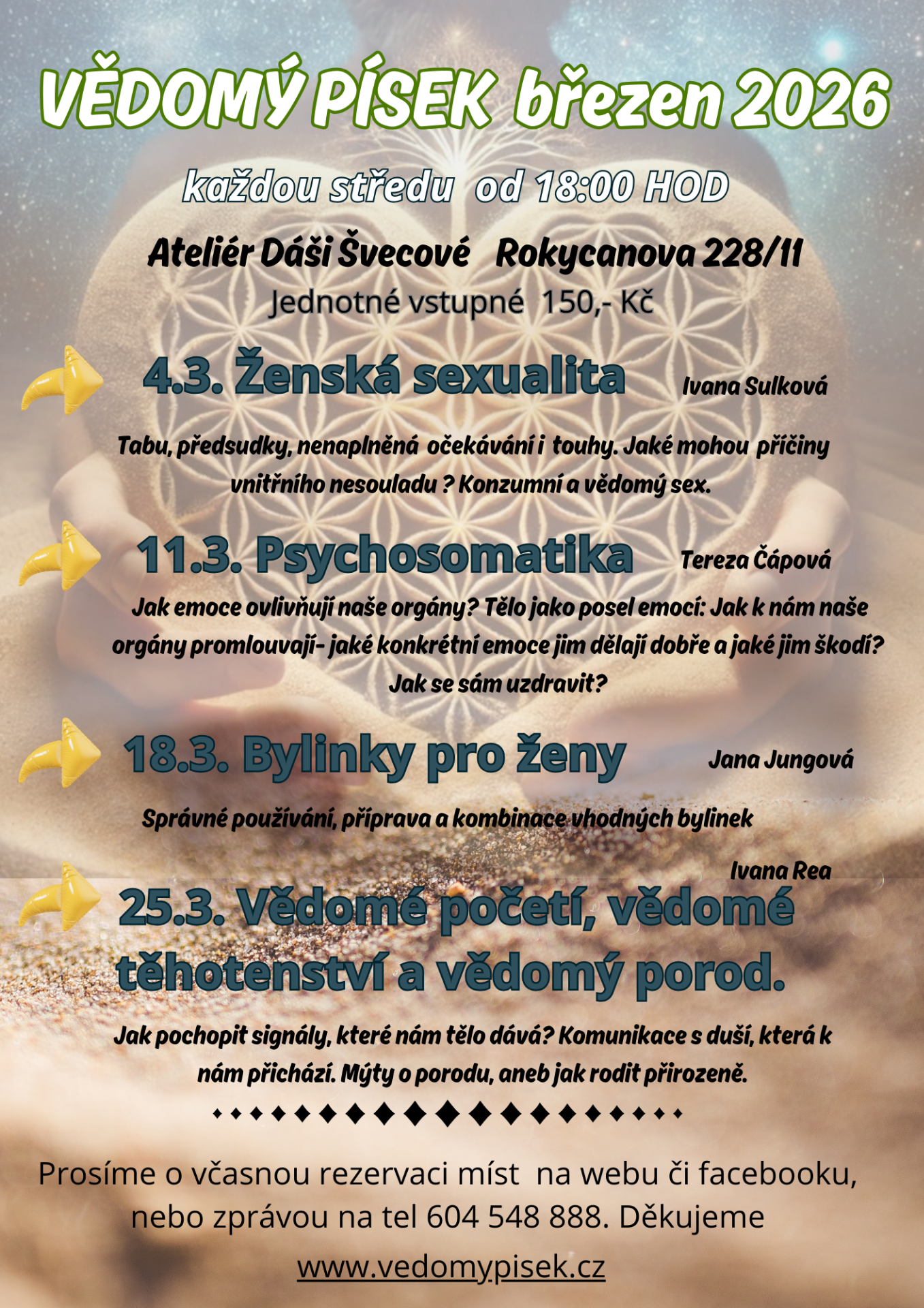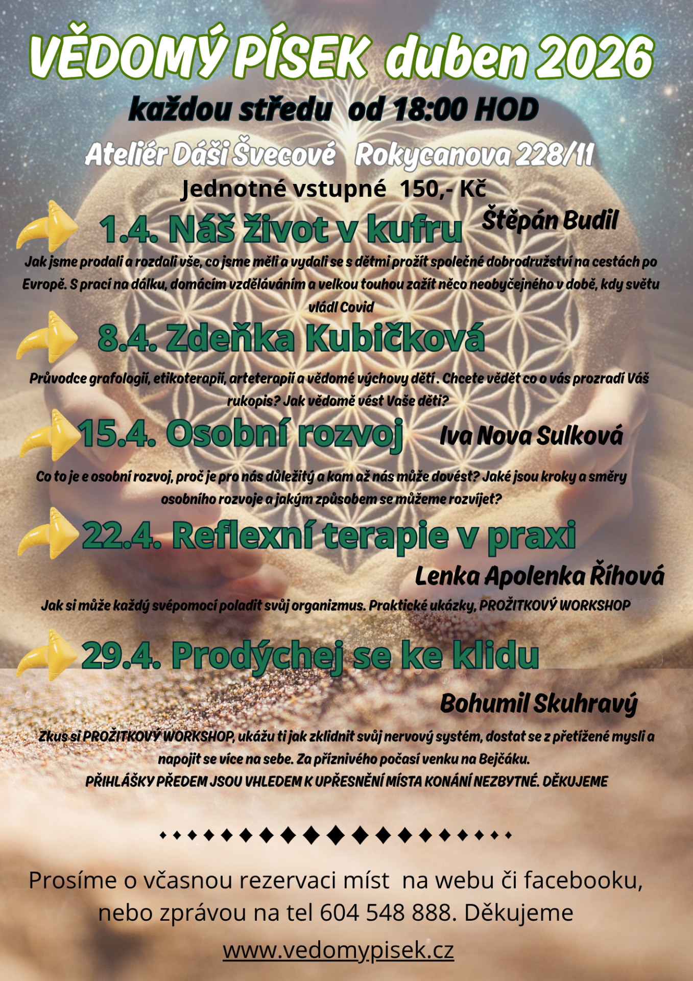 V rámci aktivity Vědomého Písku srdečně zveme na přednášky pro veřejnost. Místa si prosím prosím rezervujte. Děkuji.
